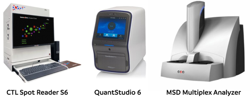 • T-cell assays, including ELISpot and MSD platform assay, to evaluate cell-mediated immune responses using PBMCs and serum samples